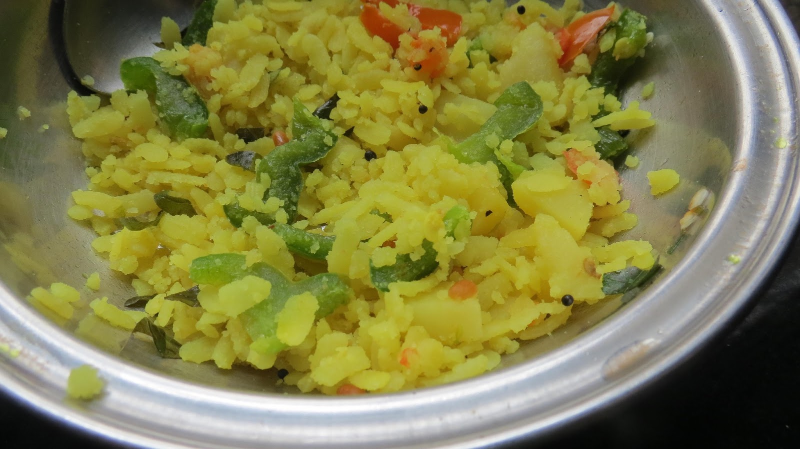 Ingredients : 1/2 cup besan,4-5 medium sized poataoes, 1/4 cup soya granules( optional ),1-2 green chillies,a few curry patta leaves, 1 tsp grated ginger, 1/4 tsp haldi,1/4 tsp hing,1/2 tsp mustard seeds,1/4 tsp jeera,2 -3 tbsp oil vessel.